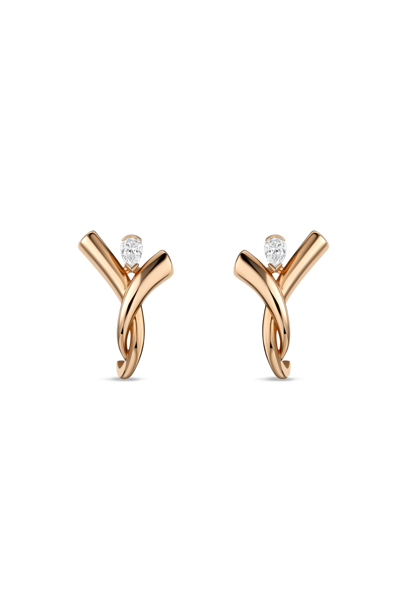 Intersect Earrings- in rose gold, set with pear-shaped diamond.