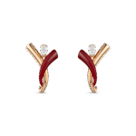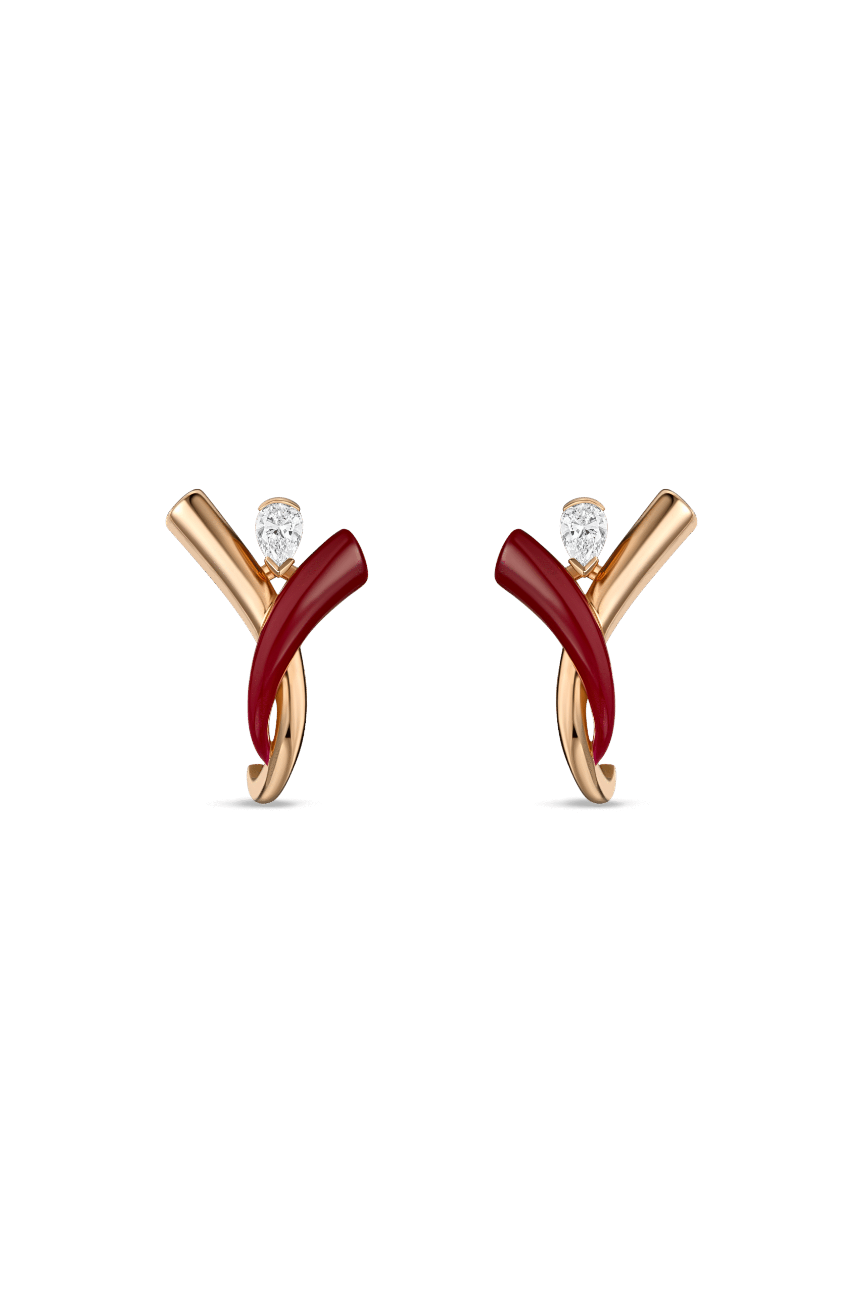 Intersect Earrings- in rose gold, set with pear-shaped diamond and burgundy enamel.