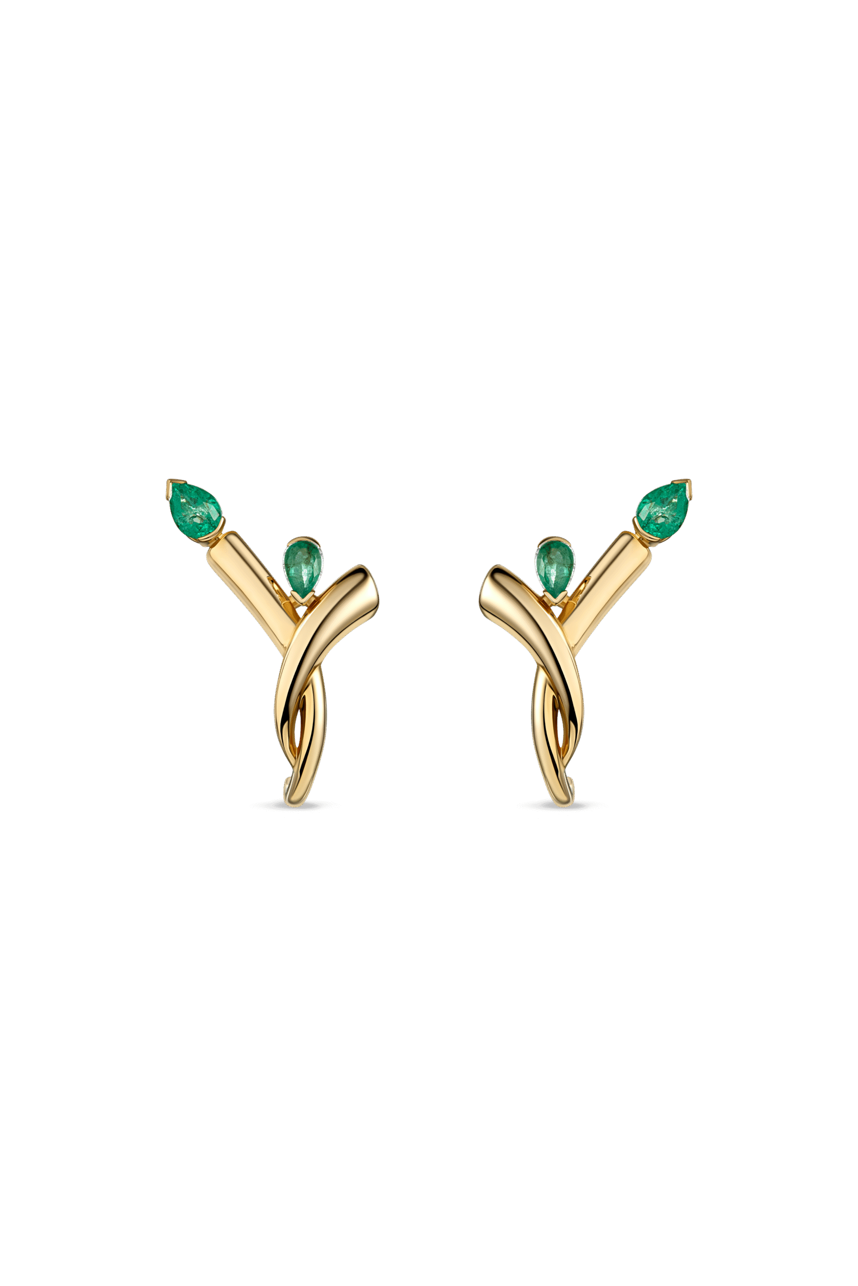 Intersect Earrings-in yellow gold,set with pear-shaped emeralds