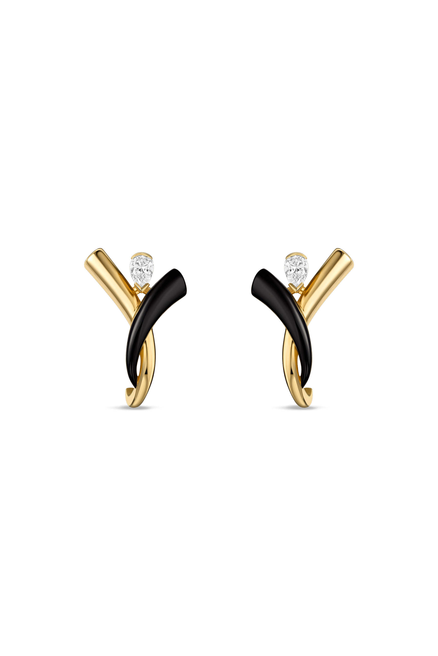 Intersect Earrings- in yellow gold, set with pear-shaped diamond