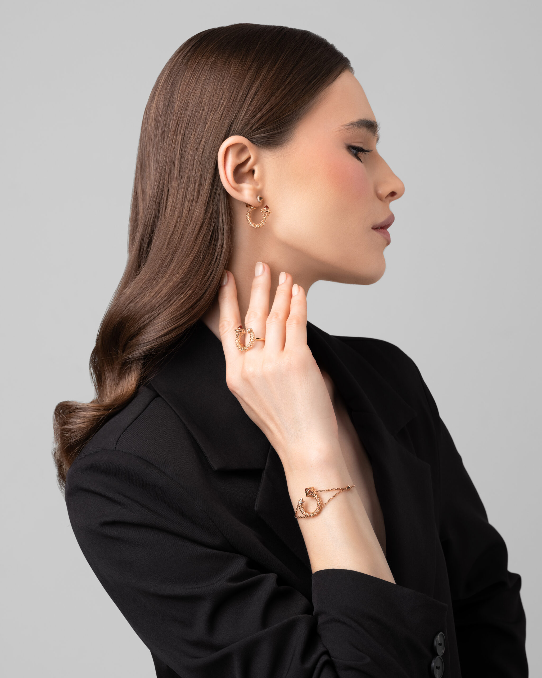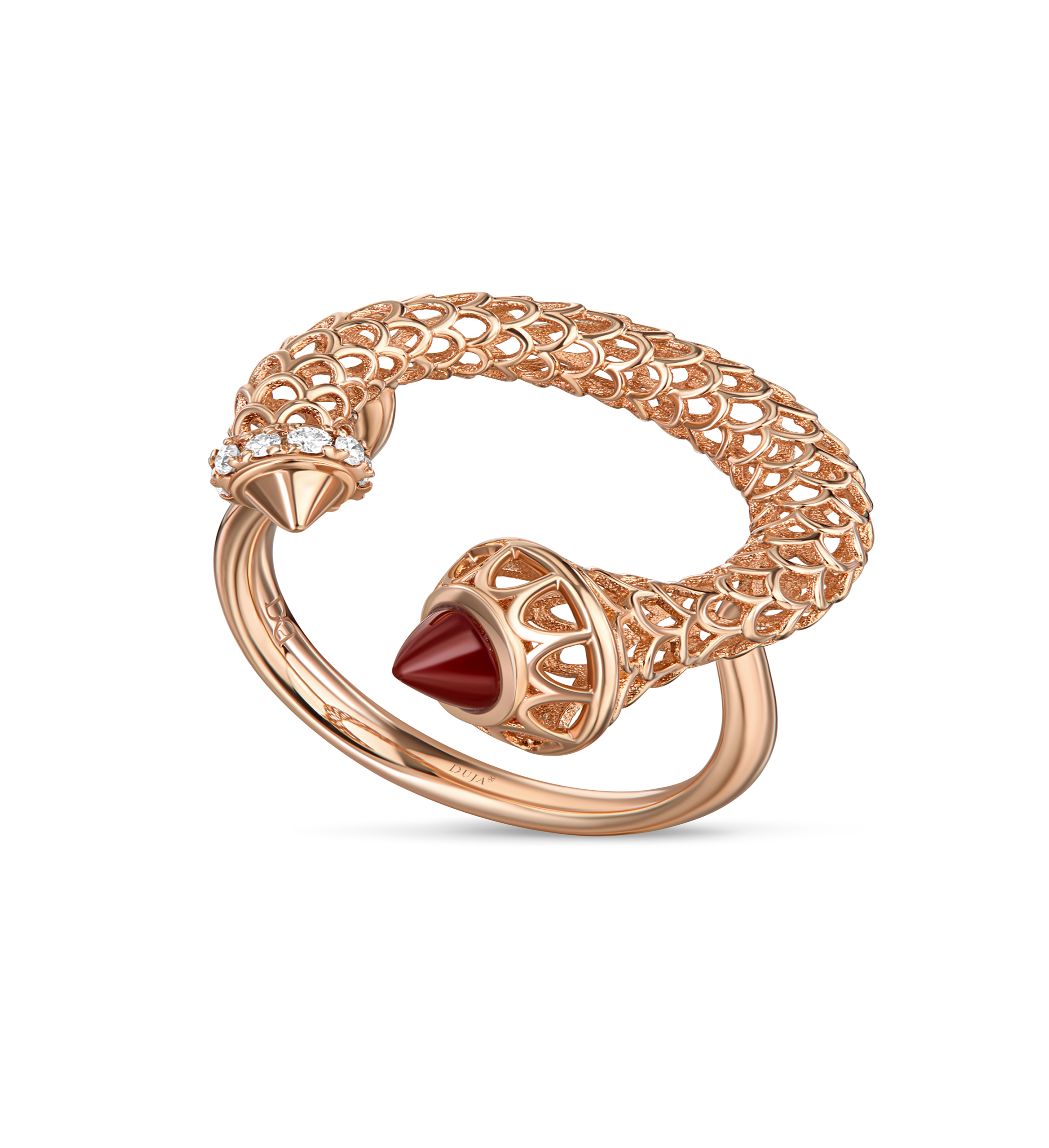 Ladon Ring- in rose gold, set with brilliant-cut diamonds and carnelian stone.
