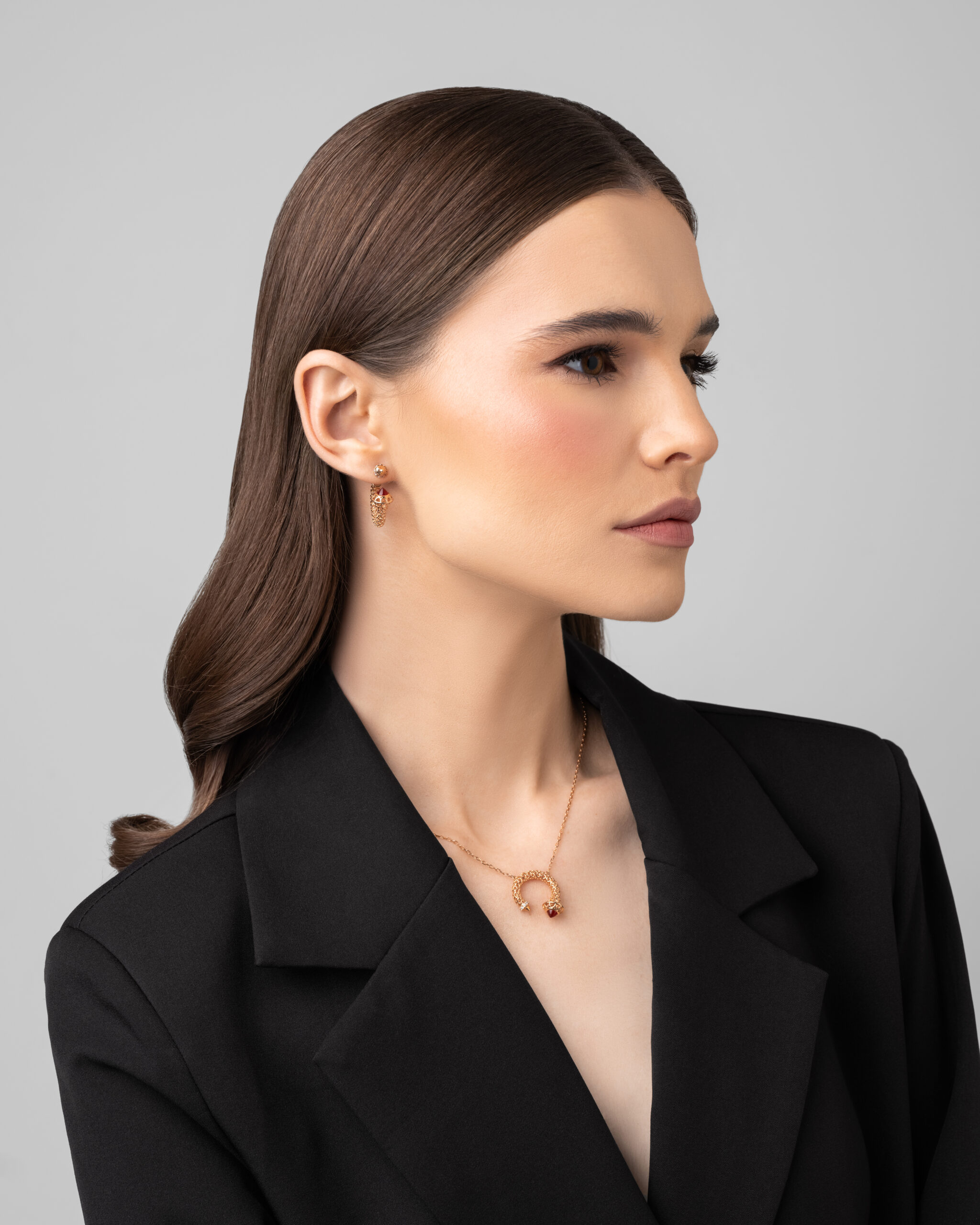 Material: 18-carat rose gold Weight: 9 brilliant-cut diamonds GH VS for 0.08 and 1 carnelian stone for 0.30 carats