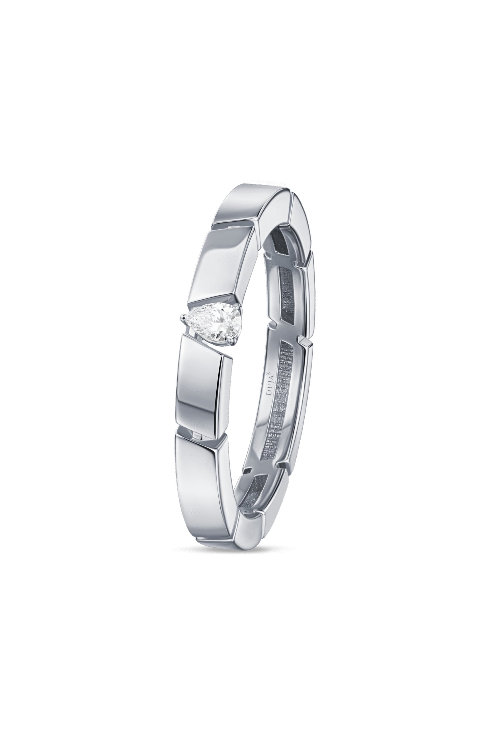 MUSE Classic- small model ring in white gold, set with a pear-shaped diamond.