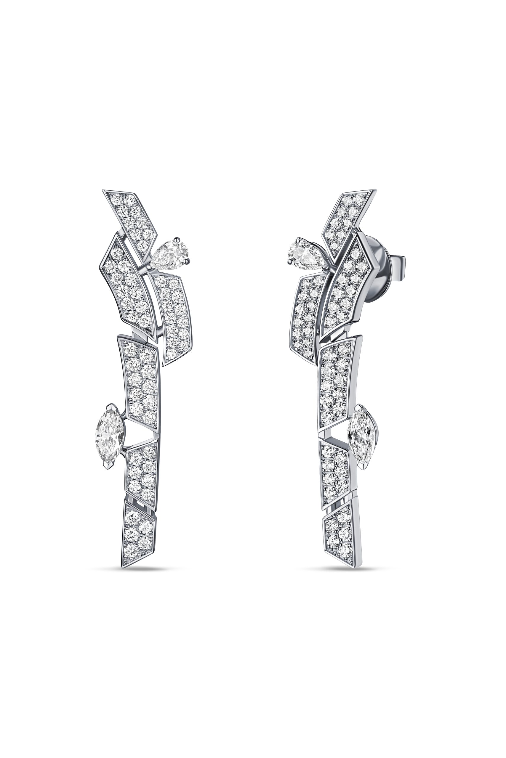 MUSE Earring- in white gold, set with a marquise-cut, pear shaped diamond and paved with brilliant-cut diamonds.