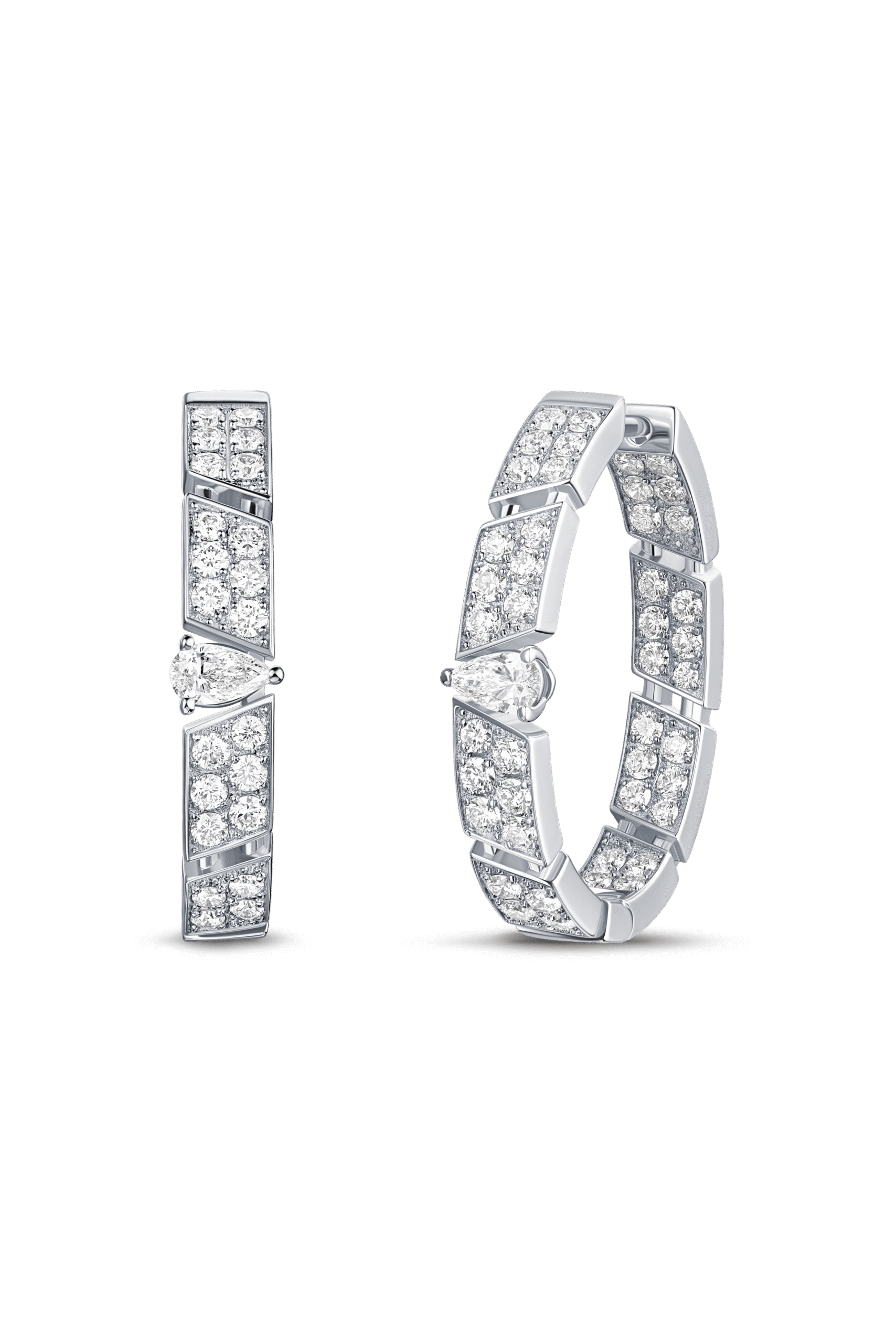 MUSE Hoop- Medium Earring- in white gold, set with a pear-shaped diamond and paved with brilliant-cut diamonds.